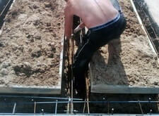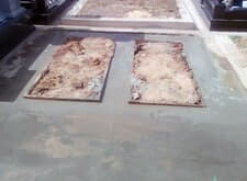 Результат нашей работы| Исходное состояние: | Стандартный ленточный фундамент по периметру участка, металлический крест и мраморная плита с надписью |
