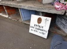 Для начала мы изготовили новые таблички, согласовав их дизайн с клиентом. Затем, по приезду на кладбище, мы извлекли из ниши уже находившиеся там плиты.